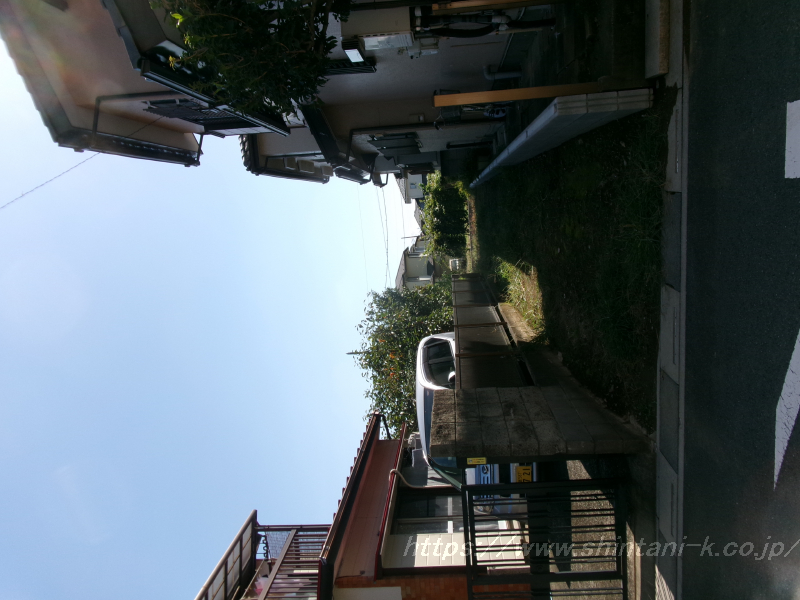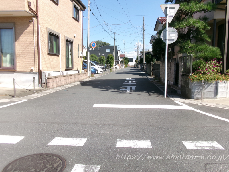 区画整ったキレイな街並み、鴨川近くの旗竿型の敷地です。南側が果樹園となっており、陽当たり良好です。