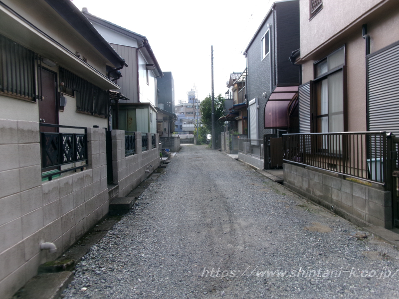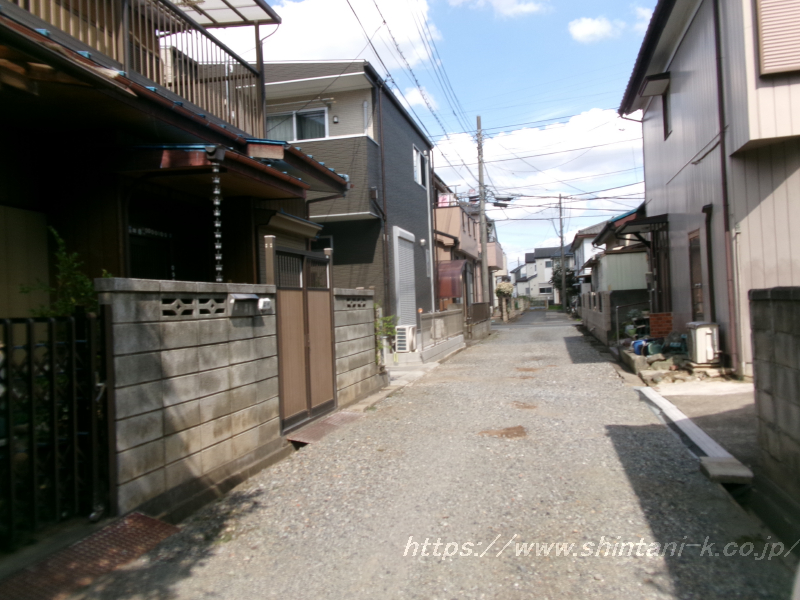 国道17号から50m程入ったエリア、前面道路は未舗装の位置指定道路になります。