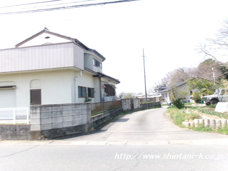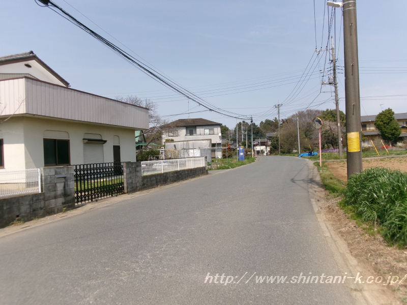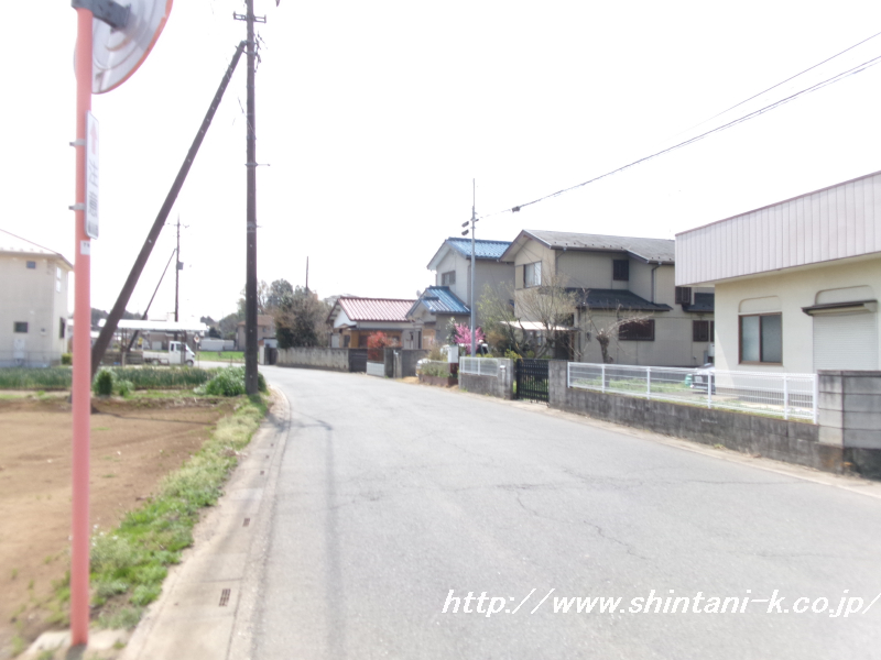 県道12号 川田谷の交差点を南に向かった通り沿いの角地、敷地は広々約140坪、周辺は畑が広がる長閑な環境です。