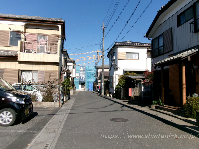 道路を挟んでの2区画同時売却です。1区画は現況更地、駐車場でお使い頂けます。道幅が狭い住宅街ではありますが、間の道路は幅員5mなのでゆったりしております。