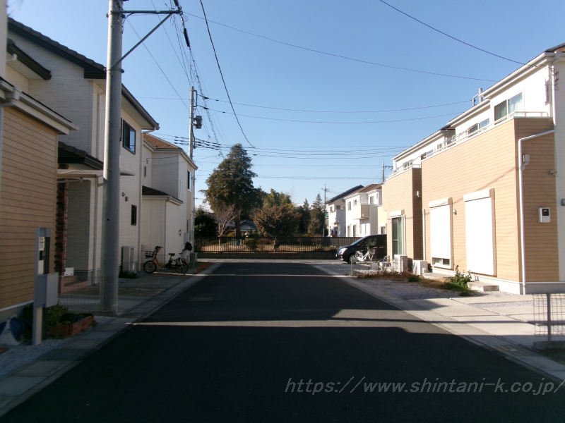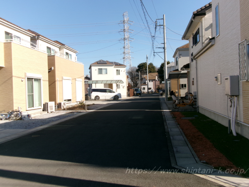 シンタ二、Check!!前面道路は南向き幅員6m、ゆったりとした街並み、陽当たり良好なお家、オール電化住宅です。